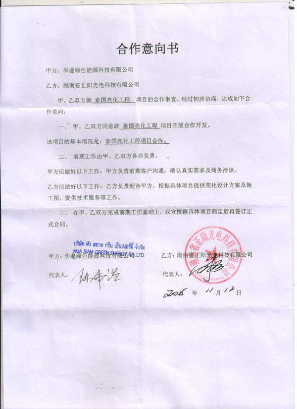 2015年11月12日,我(wǒ)公司成功(gōng)拓開泰國市場,與客戶簽訂《合作意向書》!