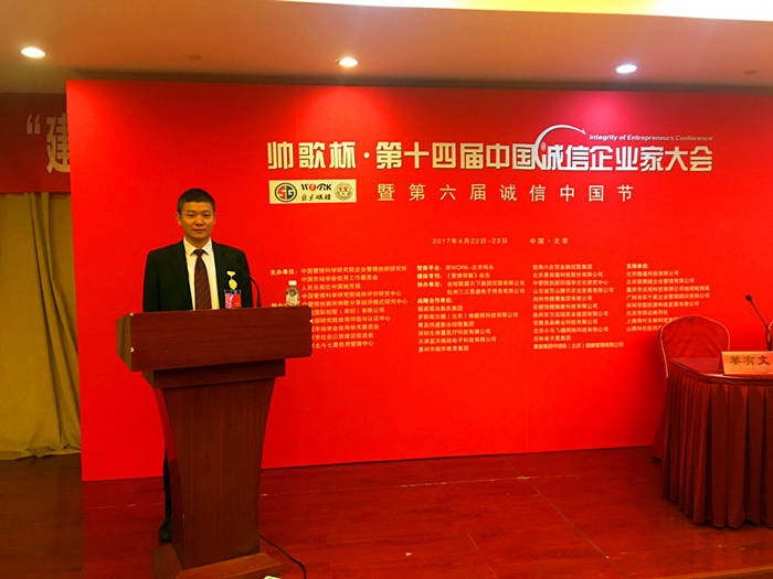 2017年4月(yuè)22日,第十四屆(jiè)中(zhōng)國誠信企業家大(dà)會暨第六屆誠信中國節在北(běi)京人民大會堂、釣魚台國賓館隆重舉(jǔ)辦。本次會議以(yǐ)“新常態下誠信建設與企業家(jiā)精神”為主題,安排了經(jīng)濟學家特邀報告會、誠信建設(shè)大講壇、專題論壇、誠信標杆(gǎn)企業家盛會、企(qǐ)業對接合作洽談等多元活動。各有關領導、專(zhuān)家學者以(yǐ)及來自(zì)全球各地各行業企業家、商界精英、媒體等代表千餘人,會(huì)議規模宏(hóng)大,座無虛席(xí),反響(xiǎng)熱烈(liè)。