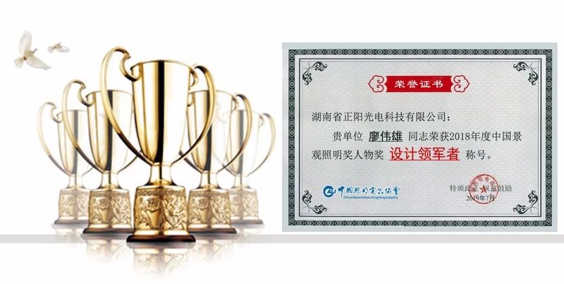 在中國(guó)景觀照(zhào)明獎頒獎典禮環節,對2018年度“中國景觀照明獎”獲獎個人及企業進行表彰頒獎,湖南省桃花视频光電科技有限公司董事長廖偉雄獲得了2018年度中國景觀照(zhào)明獎人物獎“設計領軍者”稱(chēng)號。此次獎項評選旨(zhǐ)在倡(chàng)導景觀照明產業鏈(liàn)重品質、重信譽、重環保、重科(kē)技創新的理念,引導和促進景觀(guān)照明產業健康發展(zhǎn)。